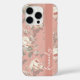 Estuche para iPhone: Envuelve tu iPhone en la elegancia de ensueño del estuche Shabby Chic Rosa para iPhone. Este funda delgado y protector presenta unas delicadas rosas blancas pintadas a mano que florecen sobre un fondo rosa claro, que ofrecen un ambiente romántico de estilo vintage de Cottagecore. El elegante guión de personalizable en un banner rosa y blanco añade un toque personal, lo que lo convierte en el accesorio perfecto para cualquier amante de la naturaleza o entusiasta del chic.