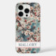 Funda iPhone 16 Pro Cherry Blossoms Teal Sakura Print Monogrammed