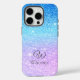 Funda iPhone 16 Pro Chic Purple Ombre Blue Glitter Modern