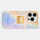 Un Relieve metalizado dorado espumoso, falso, monograma cuadrado y puntos oblongos sobre un fondo acuático color azul turquesa pastel, violeta, rosa y naranja amarillo en esta moda, un monograma moderno y ondulado, y un estuche de teléfono celular con nombre. Personaliza con tu nombre inicial. Hace una declaración divertida y elegante cada vez que la usas. ¡Un gran regalo para un amigo, así como para ti mismo! Simplemente teclee la letra de monograma y el nombre de su elección y puede personalizar fácilmente este estuche de teléfono móvil. Por favor, envíame cualquier pregunta o petición.