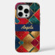 El rojo, el oro, el azul de medianoche y el verde azulado se combinan para hacer un estuche para iPhone de aspecto rico. Hermoso y elegante. Personalice su nombre en una banda azul de medianoche en el medio.
