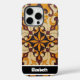 Esta elegante cubierta telefónica presenta un patrón floral de estilo mandala grabado en relieve con texturas hermosas, con un fondo color crema-beige, resaltado con intrincados acentos amarillo, naranja y marrón profundo. El diseño táctil ornamentado le añade un toque artístico sofisticado a su equipo. Una elegante barra negra en la parte inferior ofrece personalización con un nombre como "Elizabeth"; si no quieres un nombre, puedes quitarlo y cualquier otro elemento que no te guste dentro de la herramienta de diseño, creando un accesorio de smartphone realmente hecho a medida.