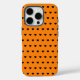 Funda para iPhone naranja con patrón de corazón negro