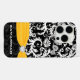 Elegante Personalizado con tu nombre o cualquier cosa que quieras funda Elegante de iphone amarillo y negro Vintage Damask - Diamante falso - Imagen impresa - no un diamante de imitación adjunto - esto es un diamante de imitación impreso - el Negro en la parte superior se puede cambiar a cualquier color haciendo clic en personalizar y luego editar. Utilice la última herramienta del menú desplegable para elegir entre las muestras de color mostradas o introduzca su código RGB hexadecimal para un color personalizado y uno de un funda de tipo.