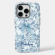 Funda iPhone 16 Pro Elegante aleta azul de jouy monograma floral