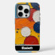Esta llamativa cubierta de teléfono exhibe un estilo de pintura al óleo fuertemente texturado, con diferentes formas redondeadas y rectangulares, en una vibrante paleta de amarillo, naranja, rojo, azul y blanco. El diseño artístico y geométrico añade un toque táctico y colorido a tu equipo. Una elegante barra negra en la parte inferior ofrece personalización con un nombre como "Elizabeth"; si no quieres un nombre, puedes quitarlo y cualquier otro elemento que no te guste dentro de la herramienta de diseño, creando un accesorio de smartphone realmente hecho a medida.