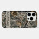 Customize this forest branches camouflage iPhone 16 pro case with your name in a trendy modern CAP font in gray on opaque cream. It's masculine and perfect for your favorite military, hunting, country or outdoorsman!