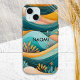 Añade un toque retro a tu teléfono con este elegante funda. Con un diseño de inspiración vintage, este funda muestra líneas onduladas y curvas en tonos verde azulados, melocotones y amarillos impresionantes, que recuerdan a las colinas onduladas de un paisaje campestre de ensueño. Combinando nostalgia y estilo contemporáneo, este funda es para todo aquel que ame los toques atrevidos de color y los diseños estrafalarios. Personalízalo con tu nombre para un elegante toque final.