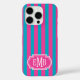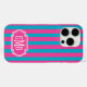 Funda iPhone 16 Pro Hot Pink and Turquoise Monogrammed Stripes
