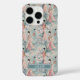 Customize this gorgeous teal, cream and pink Japanese Sakura Geisha and cherry blossoms on soft teal design iPhone 16 pro case with your your name in a trendy modern CAP font in cream on light teal. It's so delicate and beautiful!