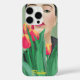 Retrato de una dama con tulipán "Dame à la tulipe", dama con tulipán naranja amarillo sobre fondo verde. Impresionante y único diseño de estuches de teléfono personalizado para usted, sus mejores amigos, ideal para regalos de cumpleaños. Fácilmente personalizado con tu nombre. Envíame un mensaje por Zazzle si quieres cambiar de color o ponerte en contacto con el soporte de Zazzle. ¡Disfruta comprando!