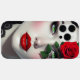 Phone case with a beautiful black and white illustration of a pretty woman with a red rose and red lipstick.