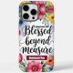 Una colorida cortina de flores silvestres que rodea la frase "Bendito más allá de la medida" en una bella y elegante tipografía caligráfica en negrita. Personalizado con nombre.