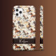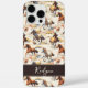 Estuche para iPhone: Proteja tu teléfono con estilo con nuestro Estuche para iPhone de Whimsical Wild Horses. Con caballos salvajes hermosamente pintados en naranja mudo, azul, marrón y amarillo sobre un fondo beige, este funda trae la esencia del boho y la estética occidental a tu dispositivo. El material duradero ofrece una protección impecable contra las gotas, mientras que el guión blanco personalizable en la pancarta marrón añade un toque personal. ¡Ideal para el espíritu moderno y libre!