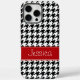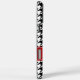 En este estuche para iPhone se presenta un patrón de patas rojas y negras. ¡Fácilmente personalizable con tu nombre!