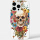 Ilustración elegante y que dice mucho por si sola una calavera sonriente rodeada de flores muy coloridas, para gente con carácter y especial,