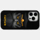 Este estuche para iPhone es para los amantes del mar. El diseño tiene un capitán gruñón y de aspecto enojado con los ojos amarillos. Puede personalizar el texto.