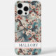 Funda iPhone 16 Pro Max Cherry Blossoms Teal Sakura Print Monogrammed