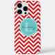 Funda iPhone 16 Pro Max Chevron rojo y Aqua con monograma Personalizado