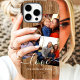 Funda iPhone 16 Pro Max Collage de fotos de familia Rustic Wood