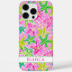 Customize this colorful watercolor starfish in greens and pinks iPhone 15 pro max case with your your name in a trendy modern CAP font in pink on white. It's so modern and trendy!