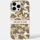 Customize this multi-hued brown desert camouflage iPhone 16 pro max case with your name in a trendy modern CAP font in brown on cream. It's masculine and perfect for your favorite military, hunting, country or outdoorsman!
