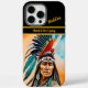 Un guerrero nativo indio se enorgullece de su cálido telón de fondo, exhibiendo intrincados tocados de plumas, joyas tradicionales y una fuerte expresión que refleja su legado y herencia. NOTA Para Cambiar Los Colores De Texto O Borde Utilice La Herramienta Editar Utilizar Diseño