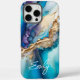 Los Fundas Modern Elegant Blue Gold Marble Personalized Name iPhone 16 Pro Max presentan su nombre personalizado en una elegante tipografía de escritura caligráfica sobre un fondo moderno de mármol azul y oro. Un regalo perfecto para su cumpleaños, madre para el Día de la Madre, hermana o mujer para Navidades y vacaciones. Diseñado por ©Evco Studio www.zazzle.com/store/evcostudio