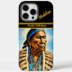 Un anciano nativo indio de pie con dignidad, vestido con atuendo tradicional adornado con plumas NOTA para cambiar el texto o los colores de la frontera usa la herramienta de edición usando el diseño