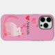 Funda iPhone 16 Pro Max Gato de rayas rosadas con corazones