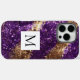 Funda iPhone 16 Pro Max Glitzy Purple Gold Glitter Monogram
