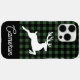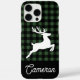 Funda iPhone 16 Pro Max Green & Black Plaid with Reindeer Custom Name