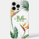 Funda iPhone 16 Pro Max Isla Tropical Monograma Floral Guión Dorado Blanco