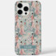 Customize this gorgeous teal, cream and pink Japanese Sakura Geisha and cherry blossoms on soft teal design iPhone 16 pro max case with your your name in a trendy modern CAP font in cream on light teal. It's so delicate and beautiful!