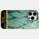 Funda iPhone 16 Pro Max mármol verde azulado y dorado con motivos complica