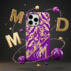 Funda iPhone 16 Pro Max Moda Mármol dorado Personalizado púrpura monograma