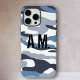 Funda iPhone 16 Pro Max Monograma azul del ejército de camuflaje