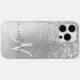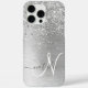 Personaliza fácilmente este diseño de estuche de teléfono de moda de moda con purpurina brillante de bonito plateado sobre un fondo metálico cepillado de plata.