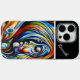 Una pintura abstracta de la cara de una mujer, representada en colores vibrantes y formas giratorias. Sus ojos están cerrados, lo que sugiere un estado de contemplación o de pensamiento profundo