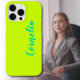 Moderno Funda Neon Lime Yellow iPhone 16 ( Spring Green y Azure Shadow 3D Text Name) Agregue su nombre, apellido, letras iniciales. Personalice el producto para su personalizado. Haga clic en el botón "Personalizar It" para cambiar el color de fondo, los estilos de fuente y el color de fuente.