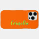 Modern Neon Sunset Naranja iPhone 16 Funda (Lime Yellow y Spring Green Shadow 3D Text Name) Añade tu nombre, apellido, letras iniciales. Personalice el producto para su personalizado. Haga clic en el botón "Personalizar It" para cambiar el color de fondo, los estilos de fuente y el color de fuente.