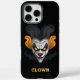 Este estuche para iPhone es para fans de payasos. El diseño tiene un payaso gruñón y de aspecto enfadado con ojos amarillos. Puede personalizar el texto.