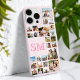 Crea tu propio estuche para iPhone personalizado que incluye 25 de tus fotos favoritas en una cuadrícula de collage de fotos de personalizados junto con las iniciales de monograma en color rosa.