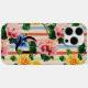 This personalized floral stripe phone case features a bold monogram initial paired with a custom name, set against a vibrant hand-painted garden pattern. Soft pink, yellow, and blue florals layered over pastel vertical stripes create a look that feels cheerful, stylish, and timeless.