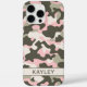 Customize this pink, green and cream camouflage iPhone 16 pro max case with your your name in a trendy modern CAP font in dark green on cream. It's so modern, girly and trendy! Perfect for any country girl!