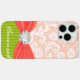 Funda iPhone 16 Pro Max Pink Faux Rhinstone Personalized Damask iPhone