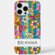 Haz una declaración retro con esta funda de teléfono iphone 16 pro max inspirada en el poder de la flor hippie de los años 70! Es moderna y trendy con flores multicolores de acuarela brillantes. Hazlo único con tu nombre en una fuente CAP moderna en negro. ¡Se verá fabuloso en tu teléfono!