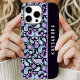 Acepta el estilo bohemio con este estuche Purple Paisley Phone. Este diseño vibrante presenta un intrincado patrón de paisajes en tonos violeta, verde azulado y blanco, con un rico fondo negro. Personalízalo con tu nombre para un toque único y elegante. Perfecto para aquellos que aprecian los audaces patrones, los diseños artísticos y un toque de personalidad. Este funda le dará un toque de encanto bohemio a su estilo cotidiano.
