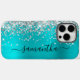 Funda iPhone 16 Pro Max Purpurina plateado Aqua Blue Metallic Girly Signat