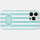 Funda iPhone 16 Pro Max Rayas Monogramadas de Aqua y Blanco